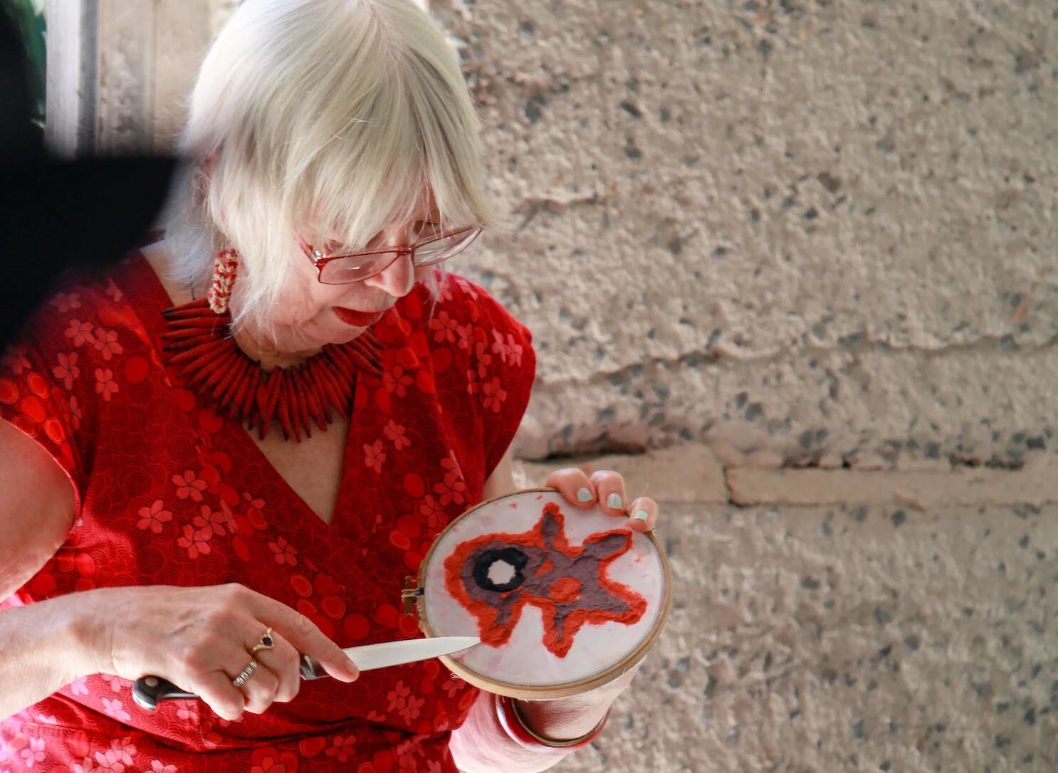 Paper World (with red hot spots) 2021. Community paper pouring event.