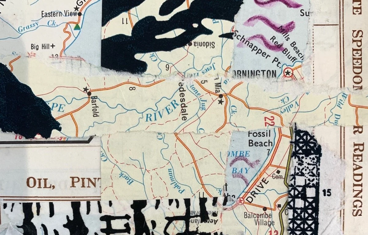 A detail of one of my January 2022 10 x 10 cm map collages