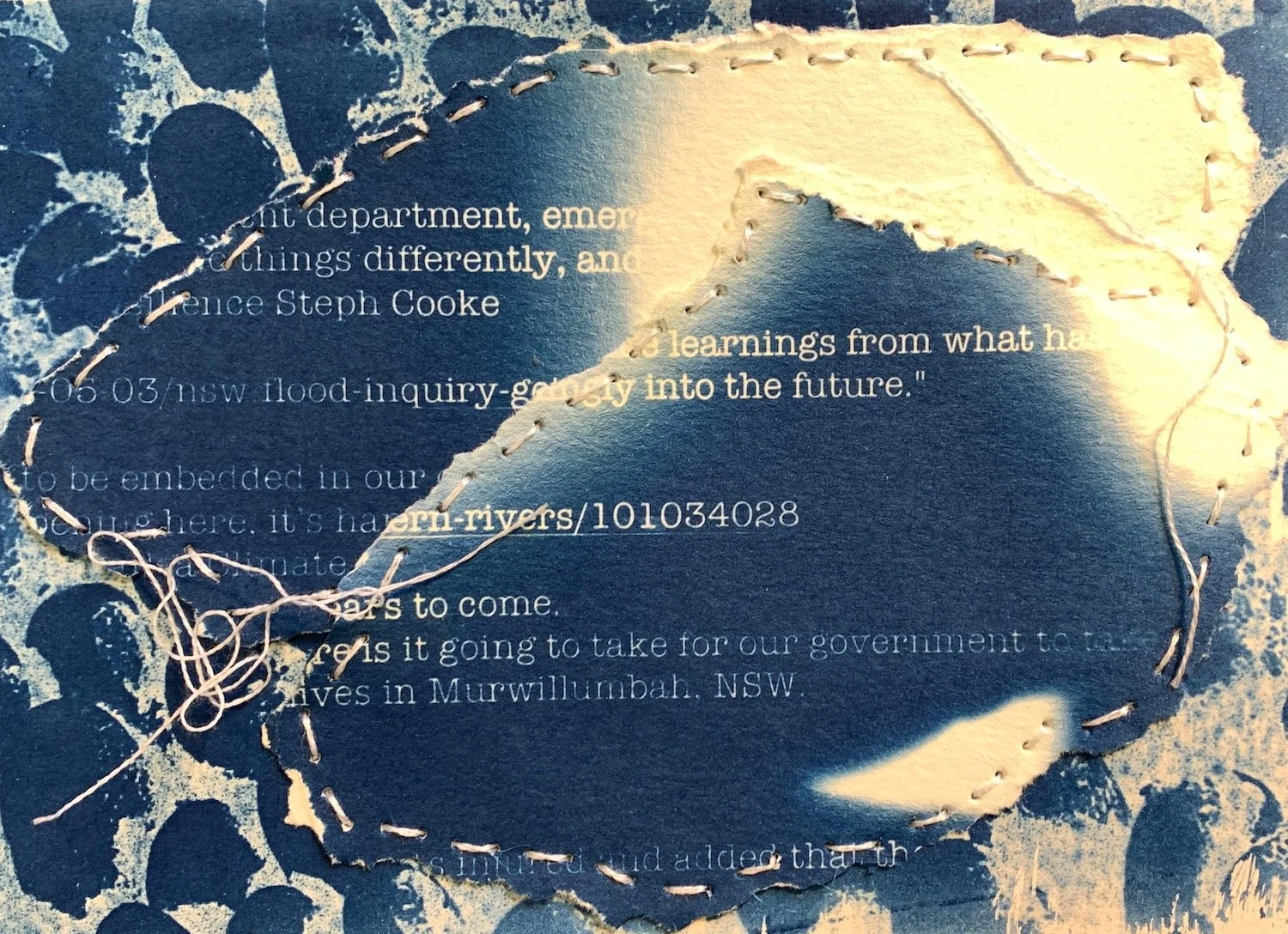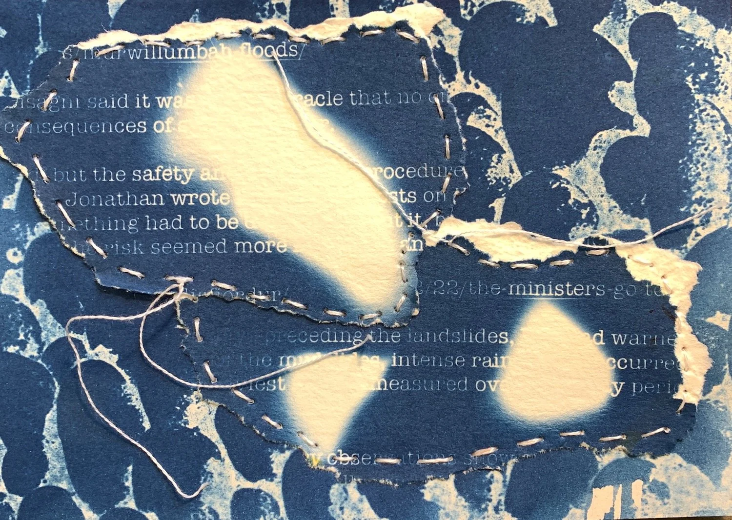 Intense Rains 2022. 15cm x 4cm .Cyanotype collage.