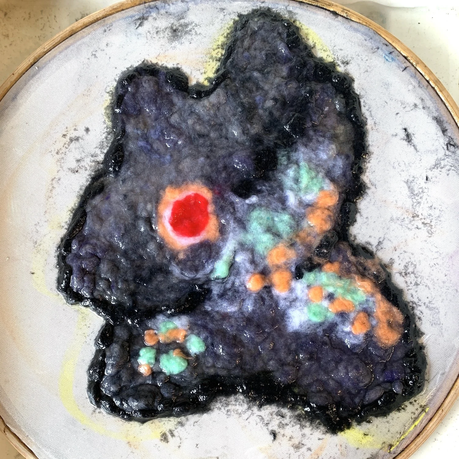 Poured paper pulp of the awful shape still wet on the screen