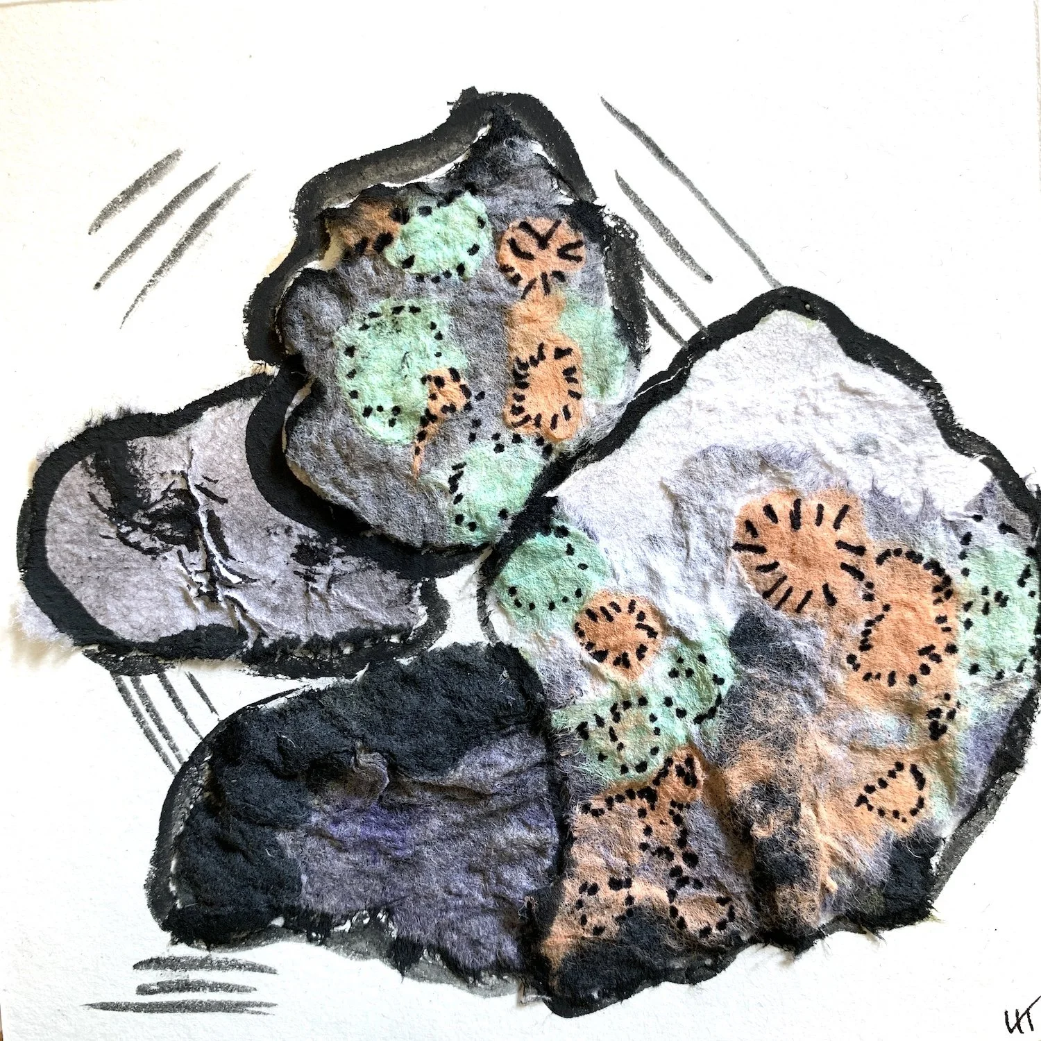 Not bad either. These two small daily artworks have now set the tone for the next set of artworks I make as I settle into my artist residency. I’ll add some thread perhaps, and collage the rocks