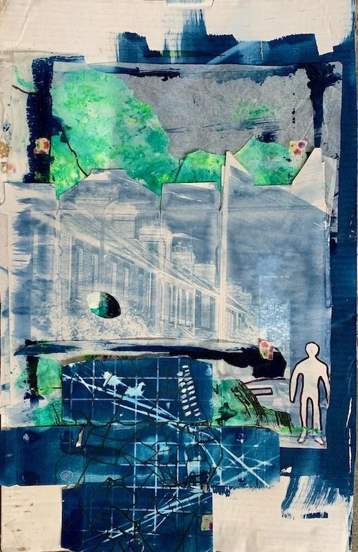 This is a really important learning for me. To see the finished pieces as elements of the process, but to perhaps make a movie of the process as I add and take away bits and pieces to build the best composite image. The artist in the space next to me did this and it was really powerful as her work was about the layers of memory of place, showing buildings and communities being built, erased and rebuilt in new iterations over time.
