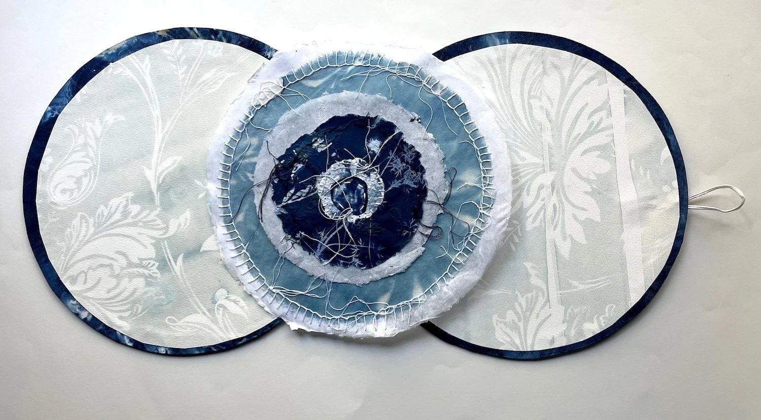 My (rejected) doily press with stitched doilies I made with cyanotype collages.