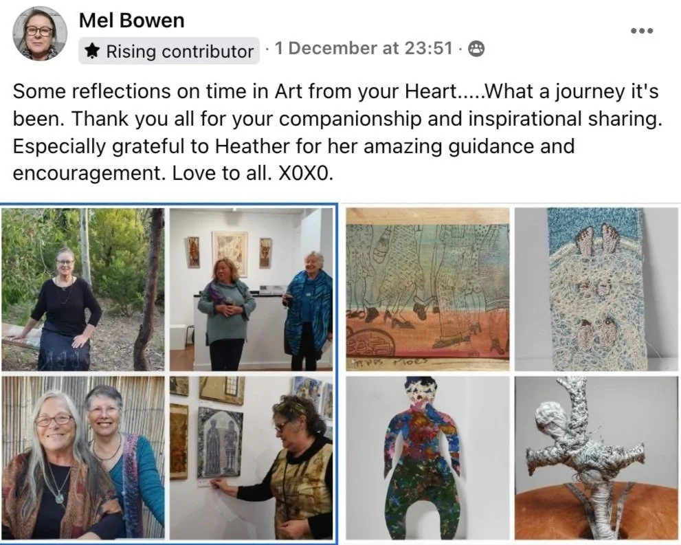 December rolls around each year bringing a sense of completion. At the end of 2024 I farewell the wonderful online group Art From The Heart (AFYH) which I started nearly four years ago. A big thankyou to AFYH member Silvana Benacchio for skilfully hosting the monthly creative challenges throughout this year. So many emerging artists have found support and solidarity in the group and I wish them all the best in their future endeavours.