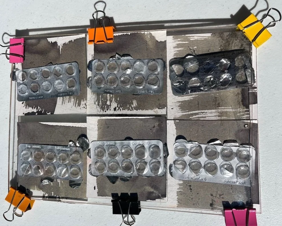 October brought sunshine and experimentation. My collection of paracetamol blister packs were turned into cyanotype prints. These became the inspiration for my artist book Post-Operative. I even stitched my knee x-rays into a pouch to house the book inside.