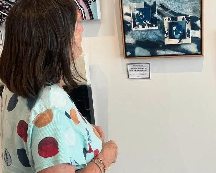Artist Kathryn Iliff viewing my work Iceland: Waking to Snow on the Mountains at Et Al Gallery in Brisbane.