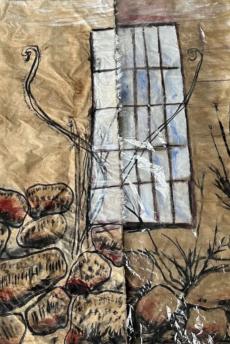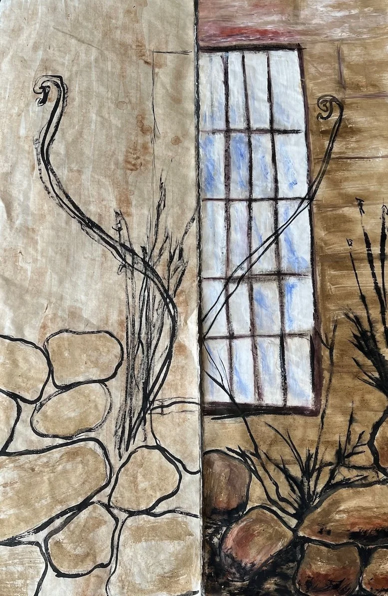 My preoccupation has been how to find a gentle way into post colonial viewpoints. To mourn what was lost and hold a vision for the future. My process has been to create windows as time portals, reflecting and holding this duality in their glassy gaze.