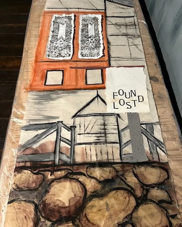 I created a new painting referencing the numerous ‘little libraries’ I had seen outside some houses as I was walking around the town. That’s a story for another day.