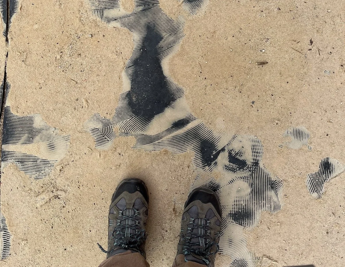 Now that I am walking again (albeit slowly and a bit wobbly) I’ve been thinking about footprints as marks on the landscape. Where do we put our feet and how do we walk?
