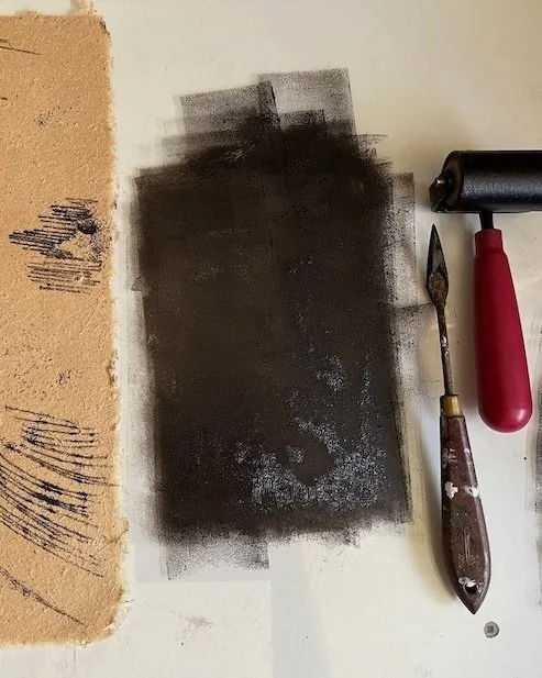As I looked at these photo memories, my thoughts returned to my musings about footprints and the marks we leave. It seemed like a fitting time to bring out my printing inks as a way to reconnect with my studio.