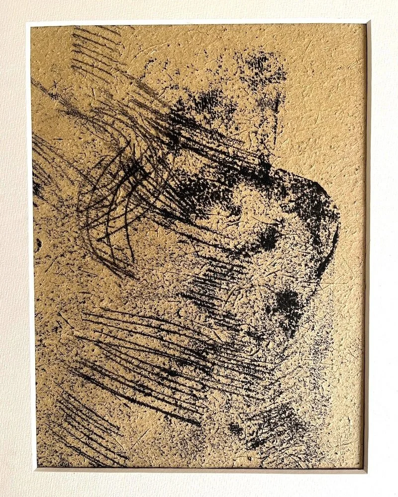 While it was not a very strong print, I was happy to activate my inspiration. Here were marks in the sand, connecting beach with Japan and beyond. Put within a little frame it captured for me the essence of that experience with room for further experimental exploration. The stones will wait till next time in the studio. Small marks, small steps…