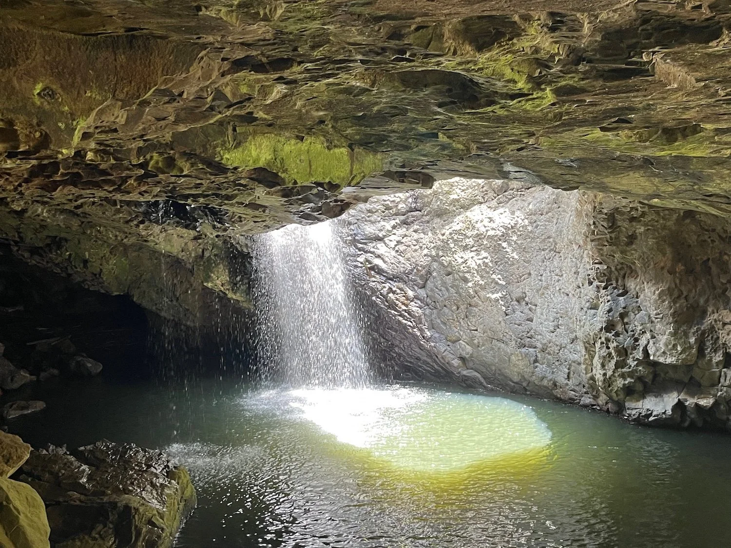 Light falls on falling water, Natural Arch, Springbrook, QLD