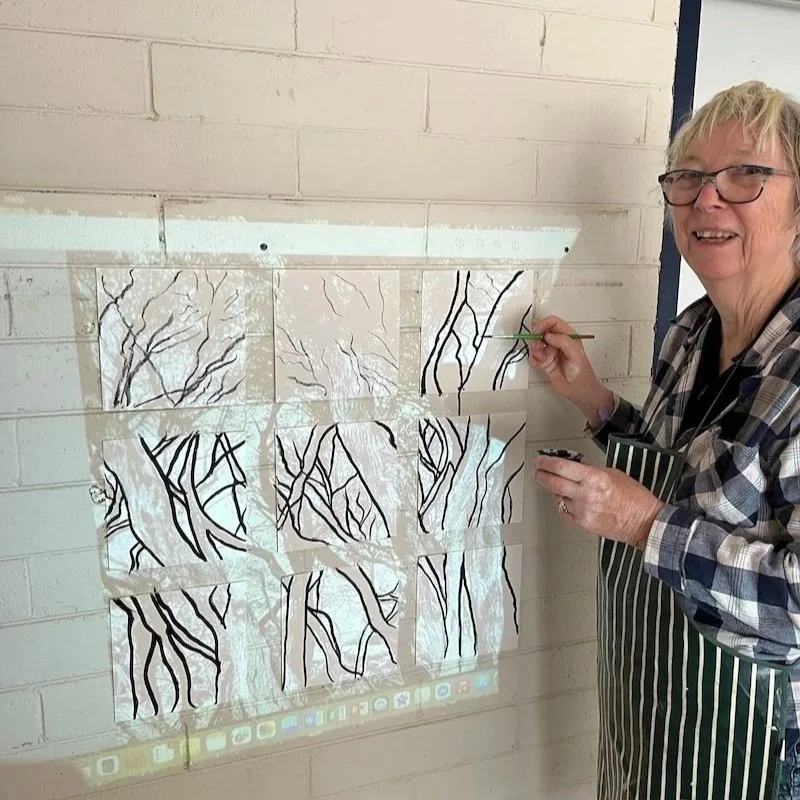 Projecting Moonah trees onto paper to draw at my Tootgarook artist residency.