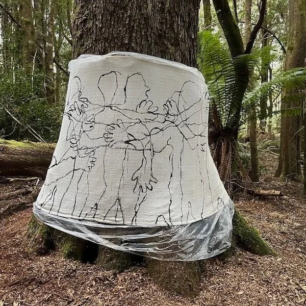 Forest Guardians drawn around a tree in Takayna forest, Tasmania
