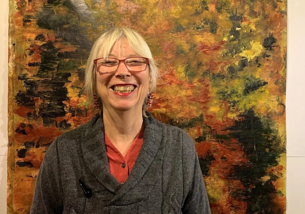 Standing in front of my Forest Floor painting from 2022 at BigCi artist residency, Bilpin, NSW.