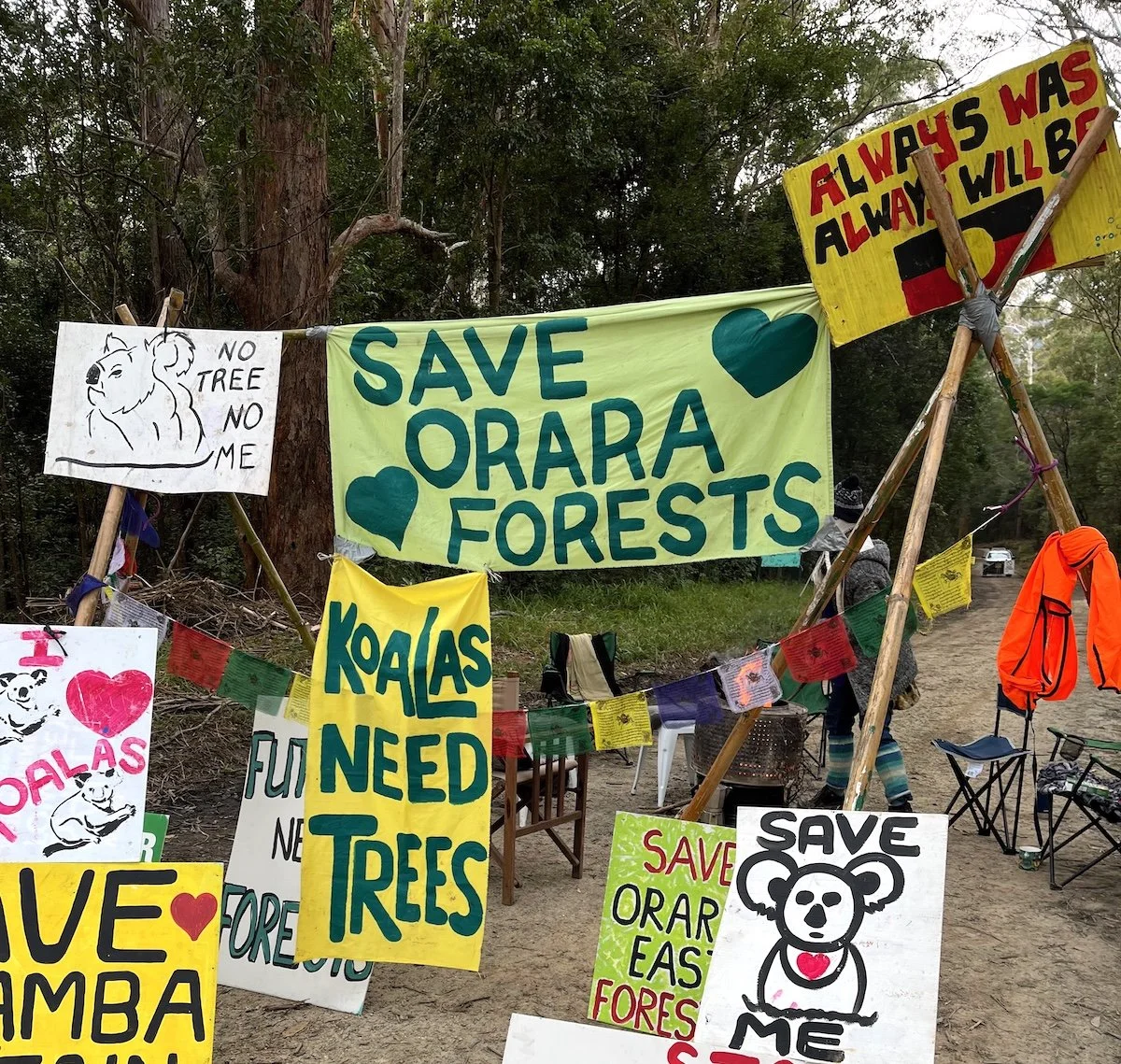 The artwork stalled. I couldn’t find joy in its creation. On Tuesday I decided to do something about it. I woke early and drove for several hours to a protest vigil outside the Orara State Forest, a site which locals had hoped would be part of the Great Koala Park that has still not been ratified. Logging in this species rich forest had just begun and the trees were falling one by one as I sat by the fireside vigil listening to birds screeching out their protest.