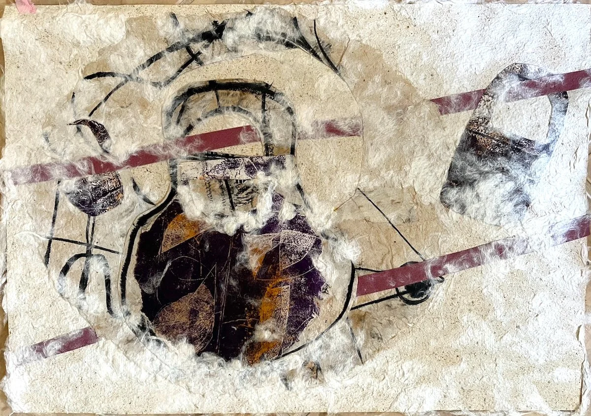 Tender Tendrils 2025 - argyrotype print, collage, handmade kozo paper