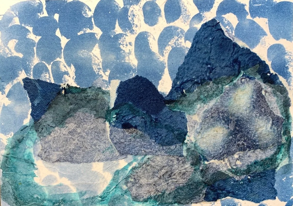 Many of these works were created during an artist residency at the Fish Factory Creative Arts Centre in Stöðvafjörður, Iceland in May 2022 as part of my Stone Stories project. Others were influenced by a subsequent trip to Greenland in June, 2022. Together they became a series of ‘dispatches’ about climate change.